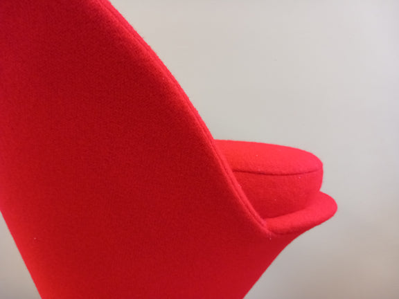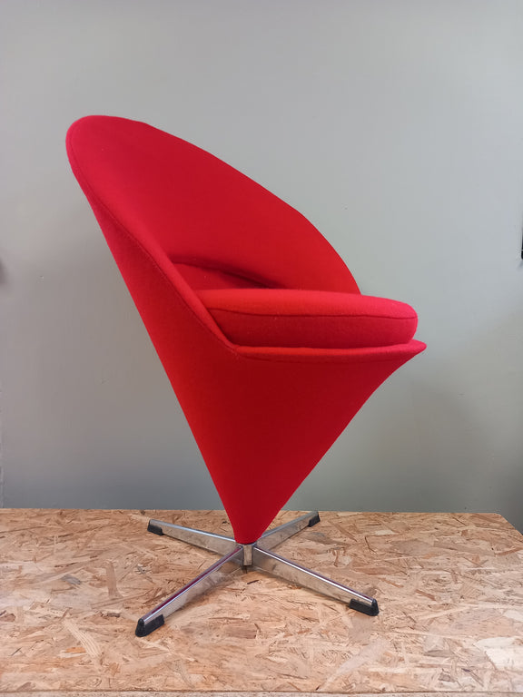 Een echte Cone Chair van Verner Panton, dat moet in het knalrood. Waarom rood? De allereerste Cone Chair was een design voor een restaurant in Kopenhagen, volledig ontworpen voor Verner Panton. Alles was in verschillende tinten rood ... dus ook de Cone Chairs.